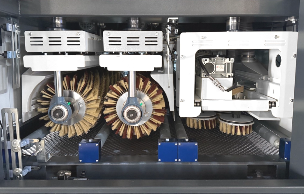The SB Series features heavy duty construction, a small footprint, and the machines can be fitted with a wide range of abrasives and heads. Replacing the abrasives is as easy as sliding out the station and inserting into the quick-change hub. One machine can be used for whitewood sanding, sealer sanding, and denibbing.